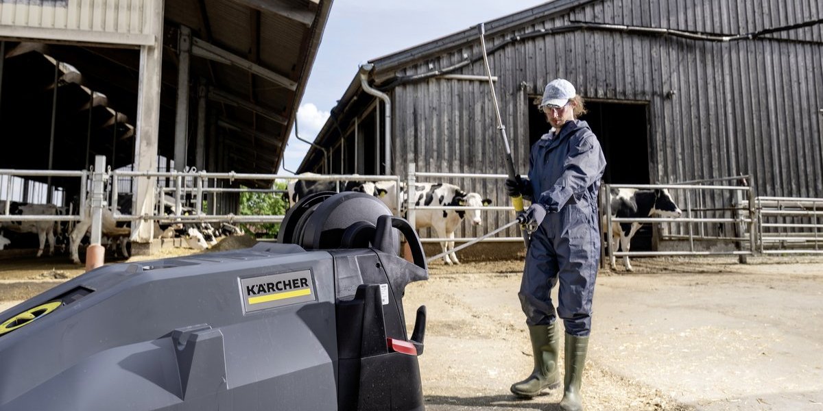 Ob zuverlässige Hochdruckreiniger zur Reinigung von Melkstand oder Melkrobotern oder leistungsstarke Heißwasser-Hochdruckgeräte für den Maschinenpark: Kärcher präsentiert passende Produkte für die vielfältigen Anwendungsbereiche in der Landwirtschaft. Der neue Heißwasser-Hochdruckreiniger HDS 11/18-4 SXA Farmer sorgt dank automatischer Schlauchtrommel mit 20 m HD-Schlauch sowohl für eine enorme Reichweite, als auch kürzere Rüstzeiten und eine sichere Aufbewahrung.