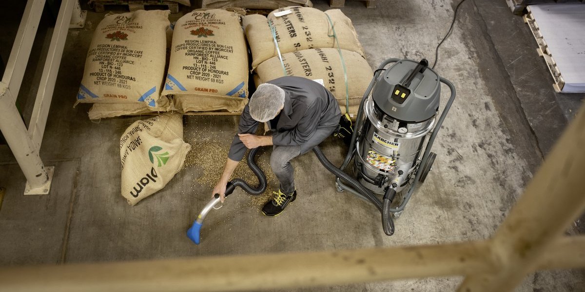 Der neue Industriesauger IVM 40/24-2 M ACD Farmer von Kärcher nimmt grobe Feststoffe und feine brennbare Stäube sicher auf. Unter anderem zur Reinigung von Silos steht Anwendern somit ein kompakter Sauger mit einem 40 l-Behälter aus Edelstahl zur Verfügung, der leicht zu manövrieren ist, hohe hygienische Anforderungen erfüllt und sich einfach desinfizieren lässt.