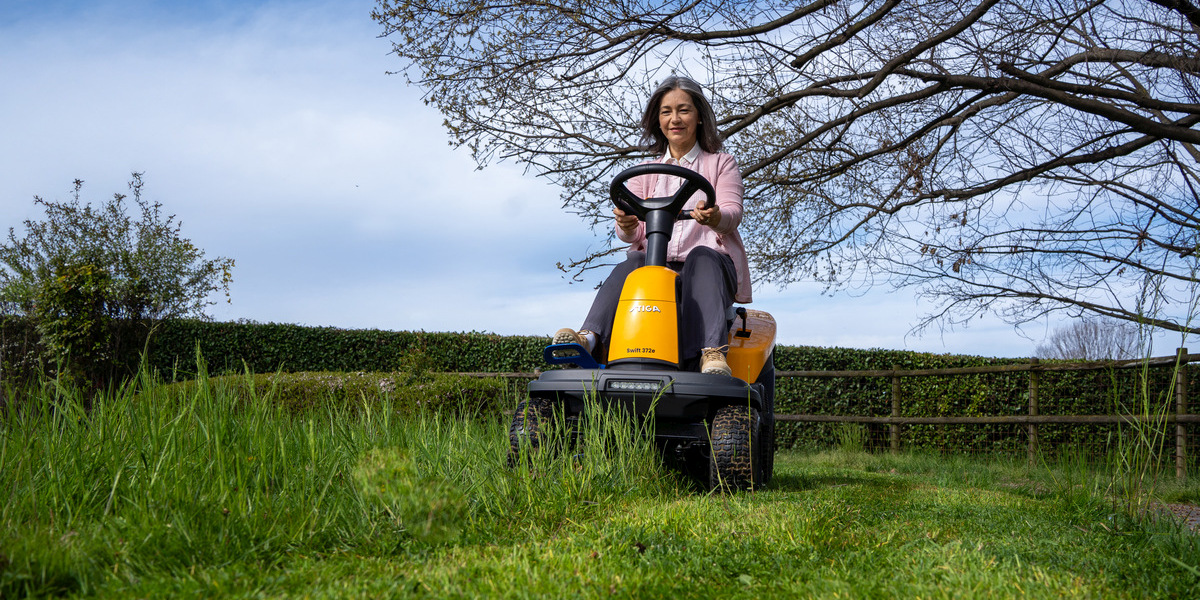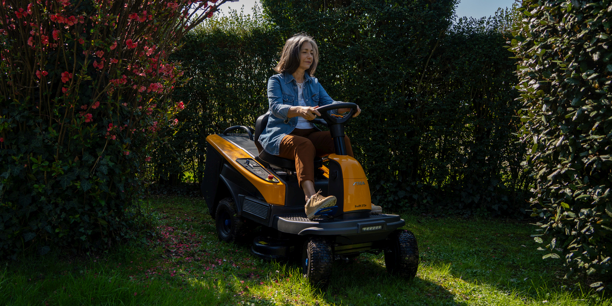 Der kompakte Akku-Aufsitzmäher Swift wurde für komplexe Rasenflächen entwickelt. Durch die Gerätebreite von knapp 74 cm, den kleinen Wendekreis und kurzen Radstand kommt er gut mit engen Stellen im Garten zurecht, kann nah an Hindernissen auf dem Rasen mähen und flink um sie herum gelenkt werden.