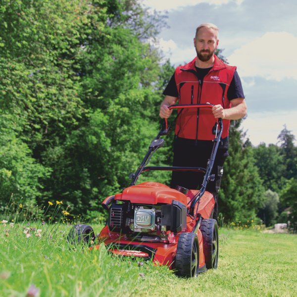 Der robuste Benzin-Rasenmäher SOLO 4731 VS überzeugt mit umfangreicher Ausstattung wie großen Hinterrädern, variablem Antrieb und flexibler 4-in-1 Funktion für Mähen, Fangen, Mulchen und Seitenauswurf.