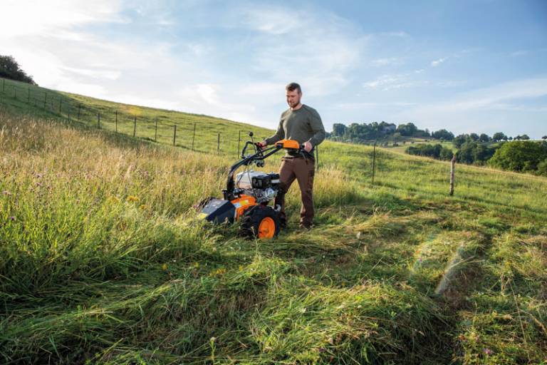Insektenschonender Schnitt: Zwei Messerbalken bewegen sich gegenläufig zueinander. Das Gras wird 3 – 10 cm über dem Boden, wie von einer Schere, in voller Länge abgeschnitten. Insekten und Kleinlebewesen werden nicht von rotierenden Werkzeugen gefährdet.