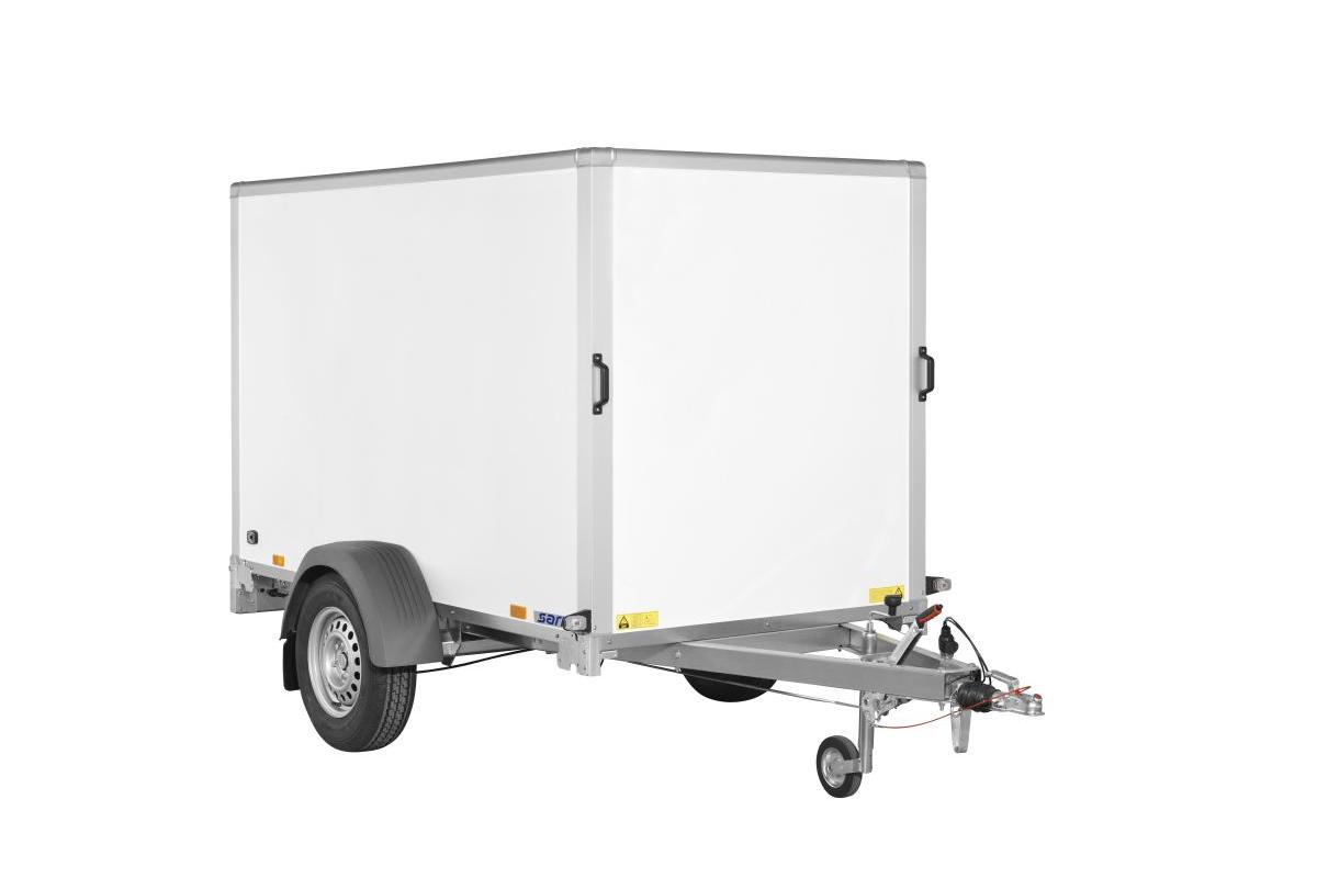 Saris Pkw-Anhänger DV 135 als Koffer-Aufbau mit V-Deichsel.