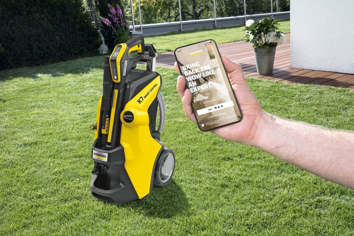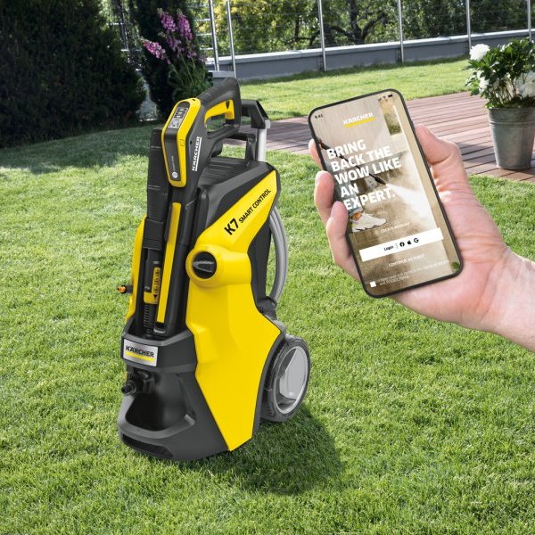 Einfach den K 7 Smart Control Flex eco!Booster-Hochdruckreiniger via Bluetooth mit der Kärcher Home & Garden App auf dem Smartphone verbinden. Der Anwendungsberater gibt praktische Tipps und Tricks zu vielen Reinigungssituationen und Reinigungsobjekten. Die App bietet zudem weitere nützliche Funktionen wie eine Aufbauanleitung, Wartungs- und Pflegehinweise sowie das Kärcher Serviceportal.