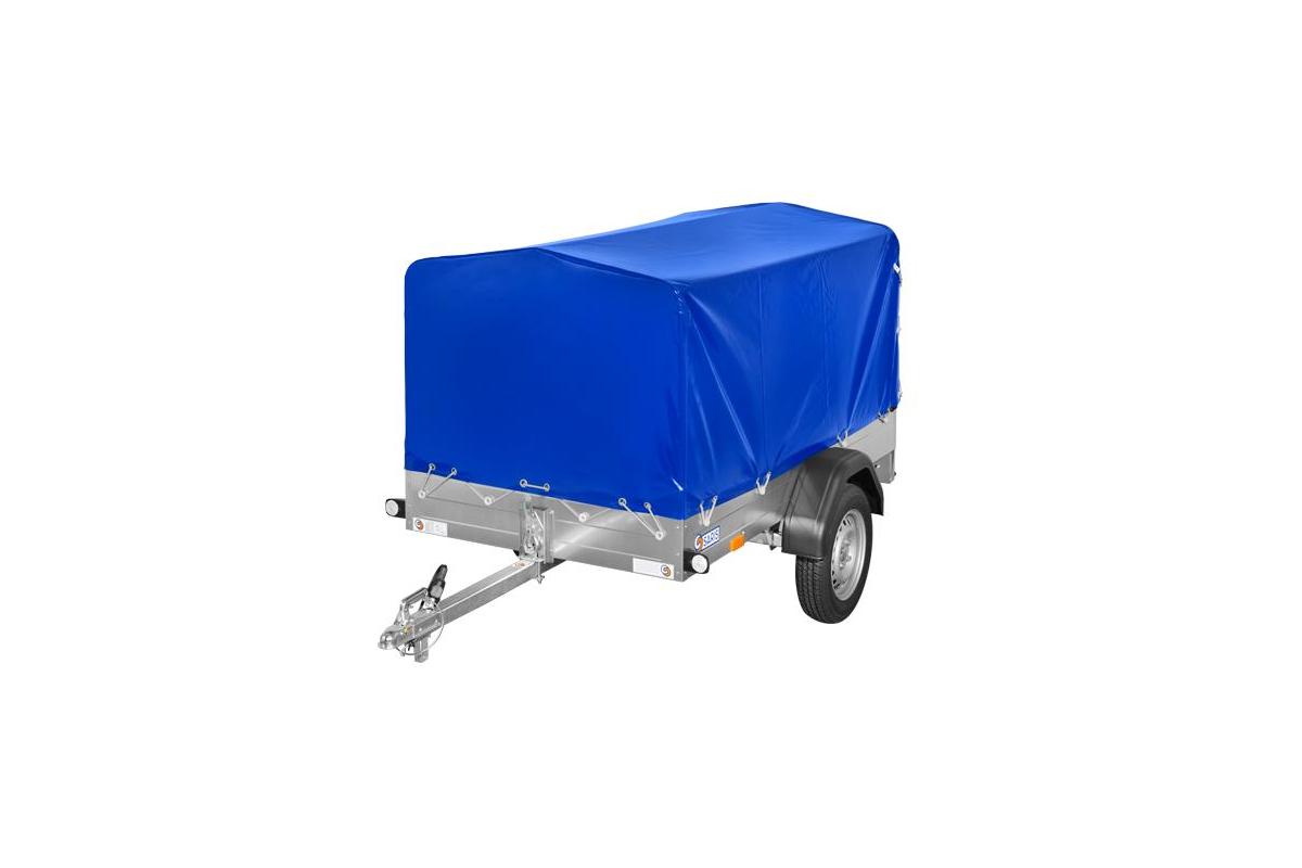 Saris Pkw-Anhänger King 75 mit Stahlblech-Aufbau, T-Deichsel und Planenaufbau.