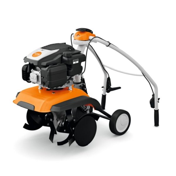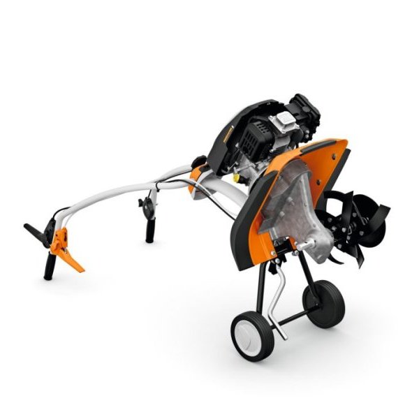 Der Holm der STIHL Motorhacke ist werkzeuglos verstellbar – er kann sowohl in der Höhe als auch seitlich angepasst werden. Für den einfachen Transport oder die platzsparende Lagerung der Motorhacke kann der Holm umgeklappt werden. Für einen leichtgängigen Transport ist diese STIHL Motorhacke mit einer Radachse am Heck ausgestattet. Während der Hackarbeit kann das Räderpaar hochgeklappt werden. In der Reinigungsposition können die Hackmesser der STIHL Motorhacke besonders leicht gereinigt, montiert und demontiert werden.