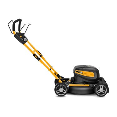 Mit einer Ladung seiner zwei 4 Ah-Akkus kann dieser Mulchmäher bis zu 800 m² in 40 Minuten bewältigen. Der bürstenlose 1,5 kW-Motor sorgt für effiziente Mäharbeit und längere Laufzeit.