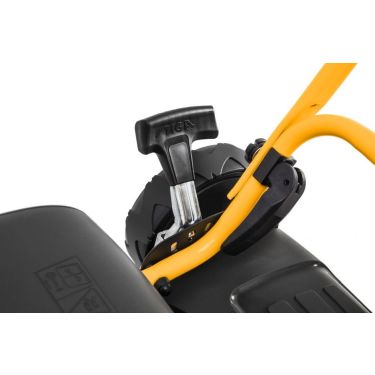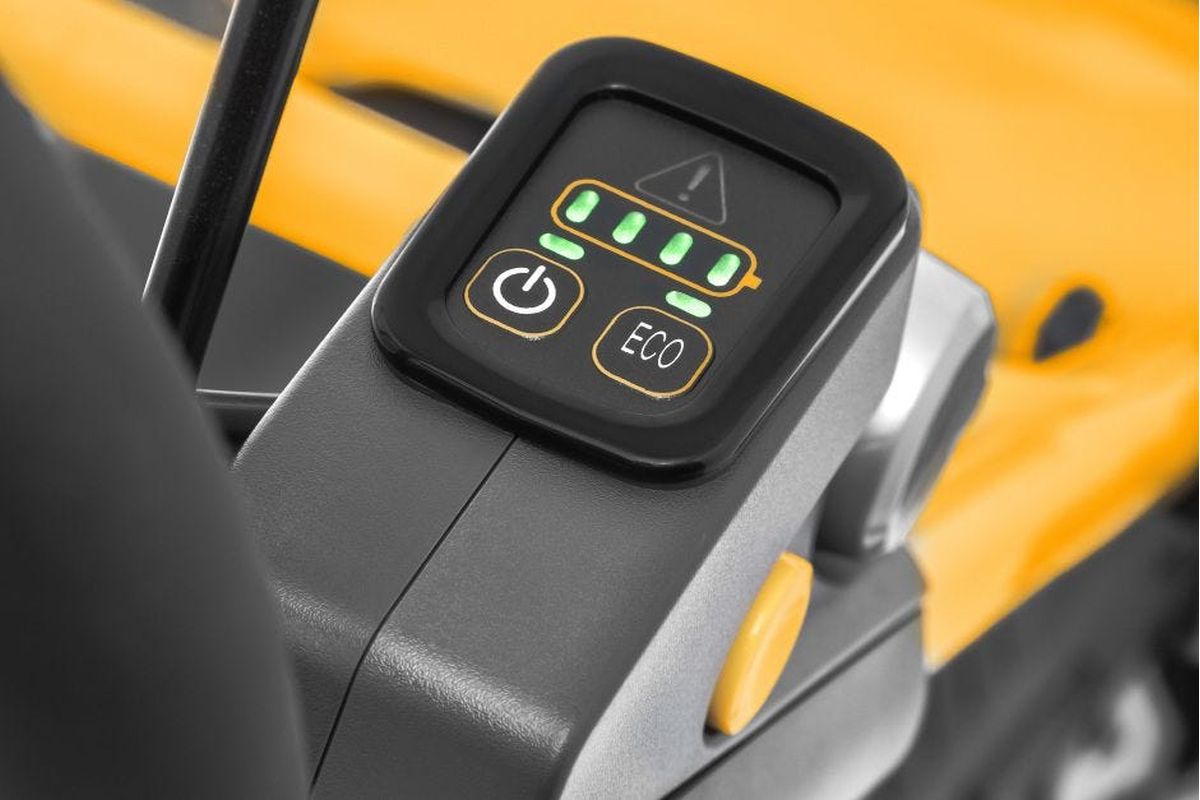 Das am Holm montierte Keypad ermöglicht die Wahl aus sechs Laufgeschwindigkeiten, die Kontrolle des Akkustands während der Arbeit und die Umschaltung in den Eco-Modus für längere Laufzeit bei etwas reduzierter Leistung. Mit robusten Schnellverschlüssen lässt sich der Holm mit Soft-Grip-Oberfläche auf die richtige Höhe und Position stellen.