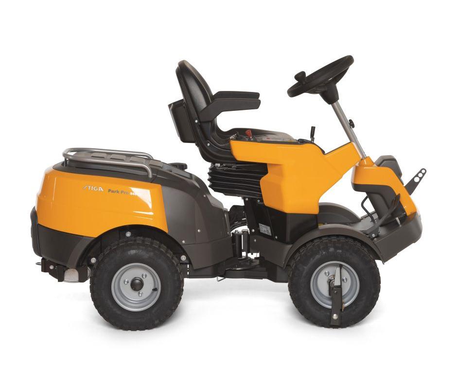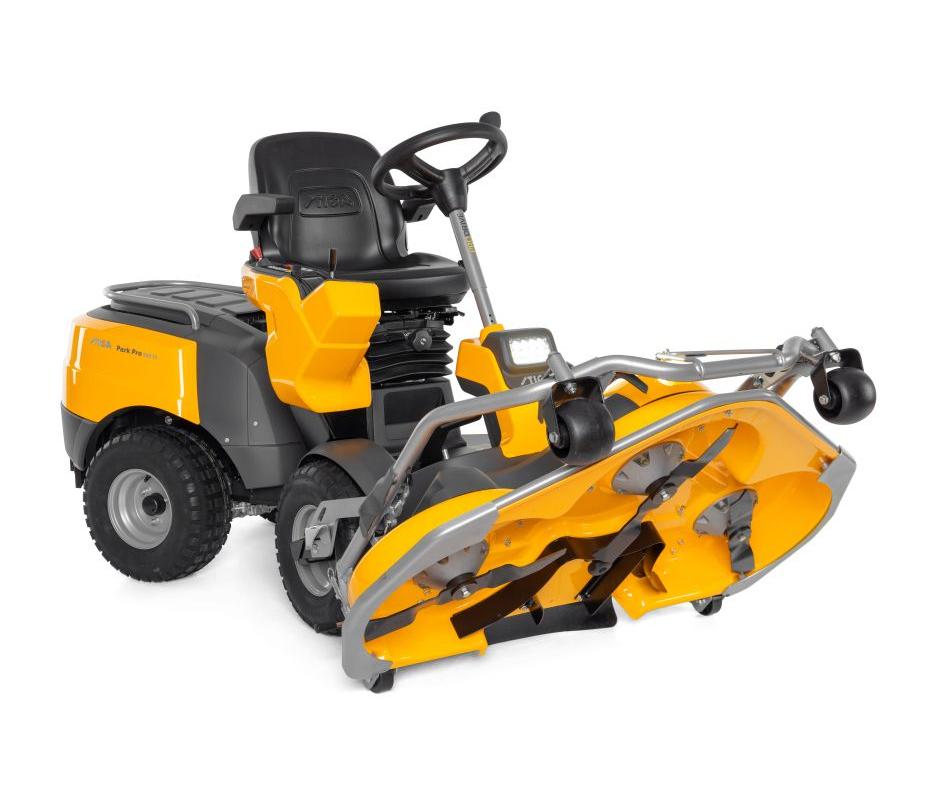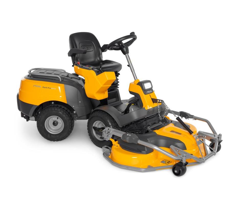 Statt eines üblichen Zwischenachsmähwerks wie bei einem Rasentraktor, verfügt der STIGA Park Pro 540 IX über ein Frontmähdeck, das dem Fahrer nicht nur eine freie, uneingeschränkte Sicht auf den vorgesehenen Mähweg bietet, sondern auch das Mähen von Bereichen ermöglicht, die mit einem konventionell konfigurierten Aufsitz- oder Rasentraktor schwer zugänglich wären.