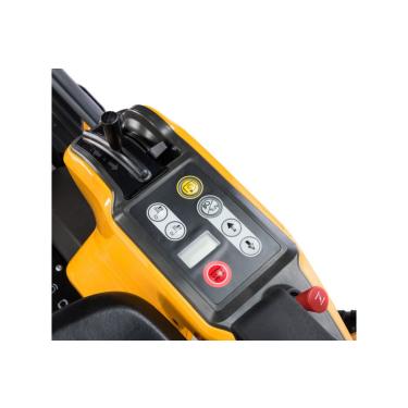 Ein hydrostatisches Fußpedal verbessert die Manövrierfähigkeit durch eine stufenlose Geschwindigkeitsregulierung; die elektrische Schnitthöhenverstellung - von 25 bis 65 mm - ermöglicht eine schnelle und einfache Auswahl der effektivsten Schnitthöhe.