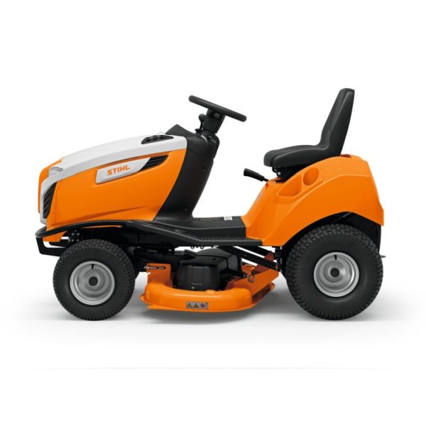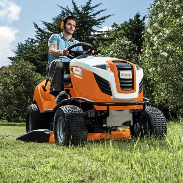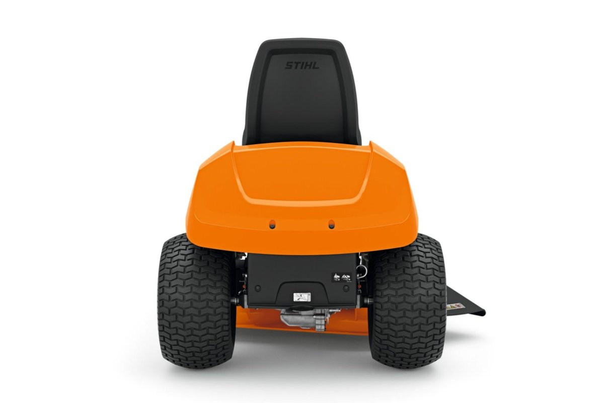 Um zügiges Rangieren zu erleichtern, kann mit dem STIHL spezifischen 1-Pedal-Fahrantrieb die Fahrtrichtung komfortabel per Handhebel zwischen Vorwärtsgang und Rückwärtsgang gewechselt werden. Das drucksensitive Pedal erlaubt eine feine Abstufung des Tempos zwischen Höchstgeschwindigkeit und Stillstand. Für ein sofortiges Stoppen sorgt das separate Bremspedal. Das Kupplungssystem für die Mähdeckzuschaltung erleichtert das Hinzuschalten und Abschalten der Messer. Es lässt sich bequem vom Cockpit aus bedienen.