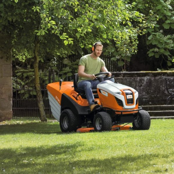 Mit dem STIHL Aufsitzmäher RT 6127 ZL arbeiten Sie kraftvoll und präzise auf umfangreichen Rasenflächen. Selbst unter erschwerten Arbeitsbedingungen garantieren der Fahrkomfort und die Bedienelemente des Rasentraktors, dass es für Sie zeitsparend und kräfteschonend bleibt. Für eine konstante Schnittqualität sorgen dabei die sehr hohe Schnittbreite und das Synchronmähwerk sowie die einfache Schnitthöhenverstellung über das ergonomisch gestaltete Cockpit.