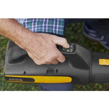 Über das intuitive Keypad kann zwischen drei Luftgeschwindigkeitsstufen gewechselt werden: Normalgeschwindigkeit dient für leichte Materialien auf Rasen- und Steinflächen, mittlere Geschwindigkeit für Grasschnitt und Blätter auf Asphalt und anderen festen Oberflächen und Höchstgeschwindigkeit für frisch gefallenen Schnee, nasses Laub und sonstigen schwereren Schmutz.