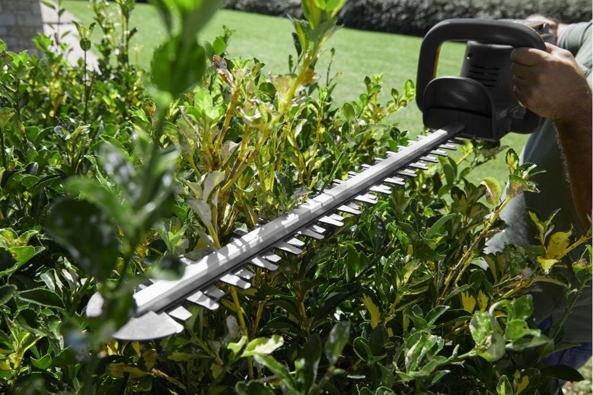 Die 56 cm langen lasergeschnittenen Dual-Action-Klingen schneiden einfach durch Zweige mit einem Durchmesser von bis zu 2,6 cm. Der Schutz an der Klingenspitze beugt Schäden an harten Oberflächen vor. Das Dual-Action-Syncro-Getriebe bewegt beide Klingen gleichzeitig und sorgt für eine zuverlässig kontinuierliche Schnittleistung.