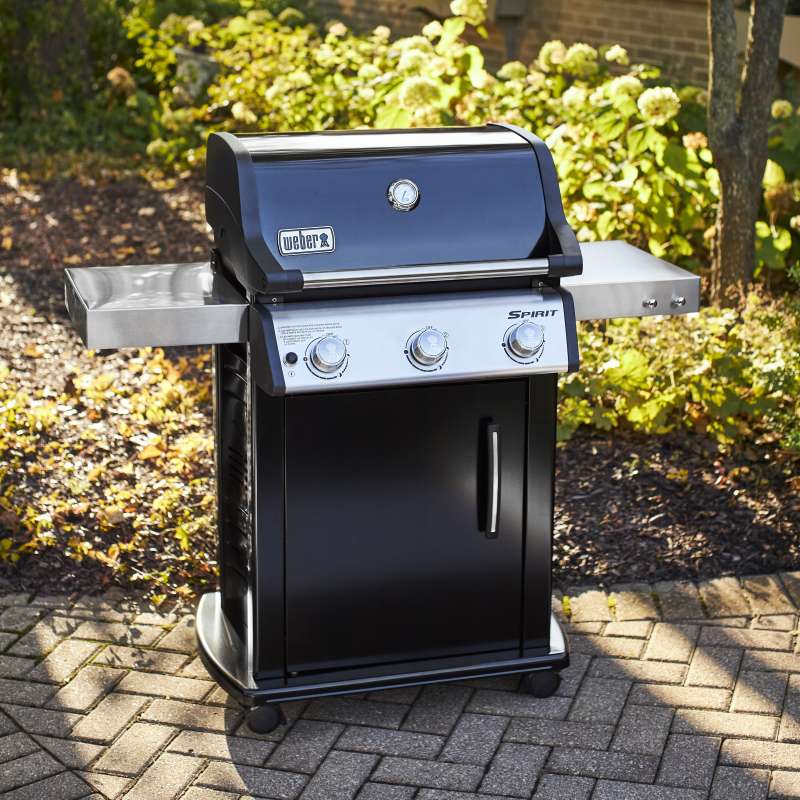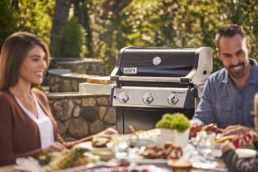 Der Gasgrill Spirit E-325 GBS mit drei Brennern und Seitenkocher verfügt über eine geräumige Grillfläche und Seitentische zum Abstellen von Serviertabletts.